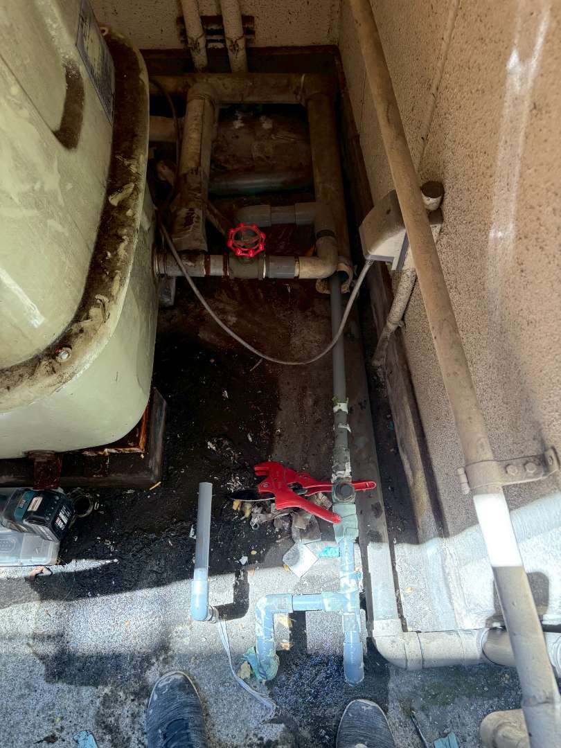 東京都渋谷区にある店舗にて、貯水槽撤去、給水管引直を行いました。